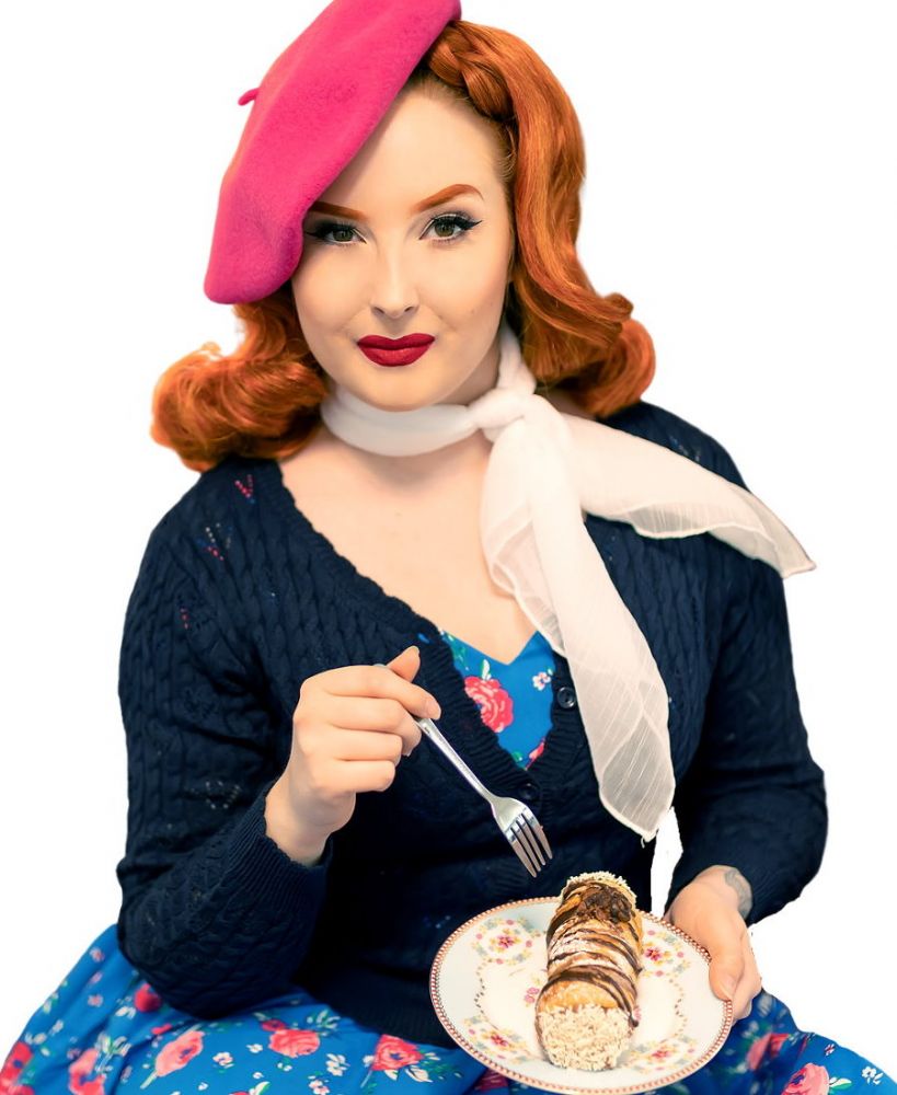 Fitted cardigan with lovely pointelle knit. Because of its short length it goes well with swing dresses/swing skirts and high waisted bottoms. Full length sleeves and v-neckline. Buttons at the centre front. Ribbed cuffs, hem and neckline. Finished with beautiful calloped hem.