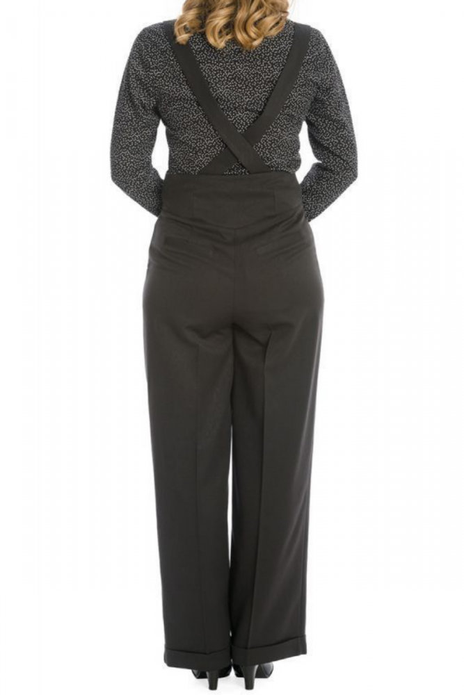 Her Favourites - the name says it all! These trousers are every vintage lover's dream! Stylish and timeless model that features high waist, front button detail, two rear pockets and wide legs with fold over detail. The trousers come with braces (made of same material) which are removable.